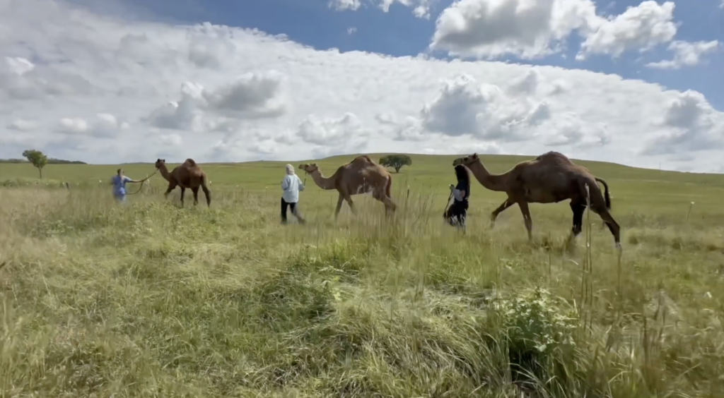 Training clinic for camels, owners, and veterinary students at Shamrock Farms in Kansas.